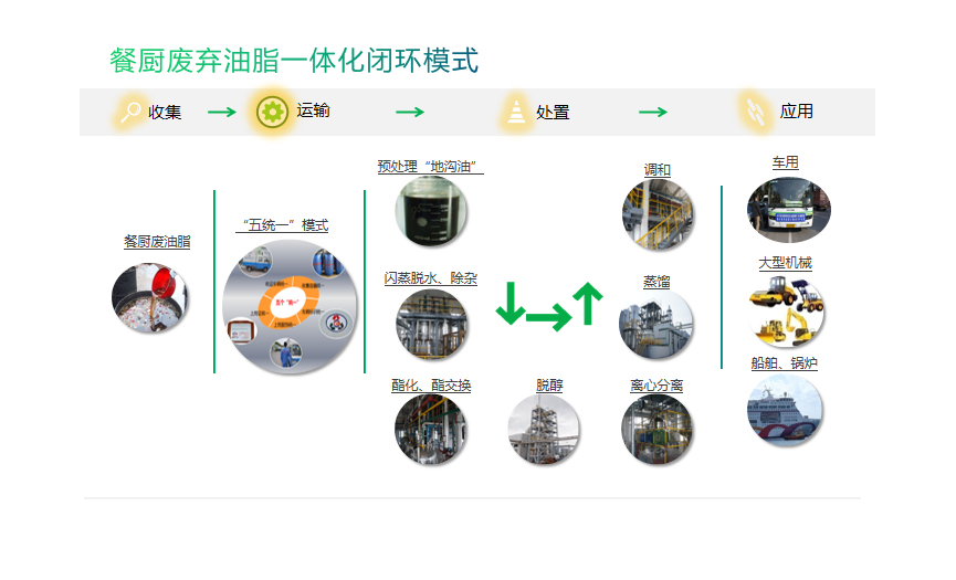 所述產(chǎn)品與石油柴油按照一定比例調(diào)和后用于巴士公交車、環(huán)衛(wèi)作業(yè)車、貨運集卡、船舶、工程機(jī)械等壓燃式發(fā)動機(jī)。